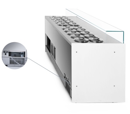 Në një mjedis me temperaturë prej +30°C, sistemi frigoriferik Pozzetti New Era arrin temperaturën e tij të funksionimit në vetëm 30 minuta, duke lejuar vendosjen e shpejtë të akullores.
