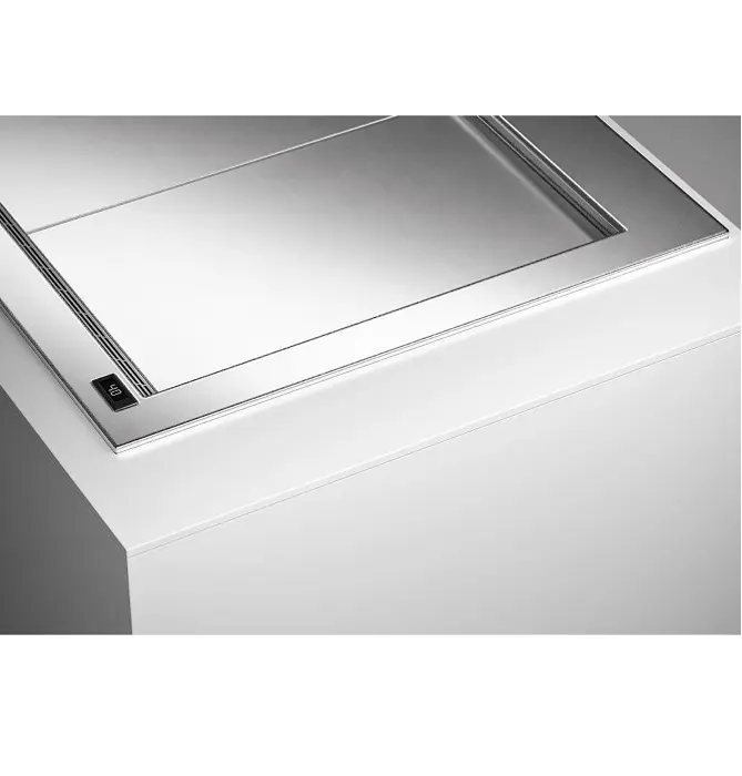 Alle Delice Drop-in- und Einbauplatten haben kühlbare und/oder beheizte Oberflächen in derselben Höhe wie die Arbeitsfläche, um maximale Ergonomie zu bieten, und sind speziell für 600x400 mm / 23,62" x 15,74" kommerzielle Tabletts konzipiert. Das Becken ist mit in drei verschiedenen Positionen verstellbaren Tabletts ausgestattet, um Produkte unterschiedlicher Höhe besser zu schützen.