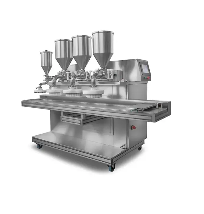 H Multicake TL είναι η καρδιά της γραμμής παραγωγής, προσφέροντας αυτόματο σχηματισμό στρώσεων κρέμας και σιροπιού για προϊόντα όπως τούρτες και πάστες. Είναι σχεδιασμένη για να προσφέρει ομοιογένεια σε κάθε κομμάτι, ταχύτητα παραγωγής, εύκολο χειρισμό και χαμηλό κόστος λειτουργίας, με έγχρωμη οθόνη αφής 7’’ και εργονομικό σχεδιασμό για αλλαγές συνταγών χωρίς εργαλεία. Η κατασκευή από υψηλής ποιότητας ανοξείδωτο ατσάλι εξασφαλίζει ανθεκτικότητα και συνεχή λειτουργία με ελάχιστη συντήρηση.