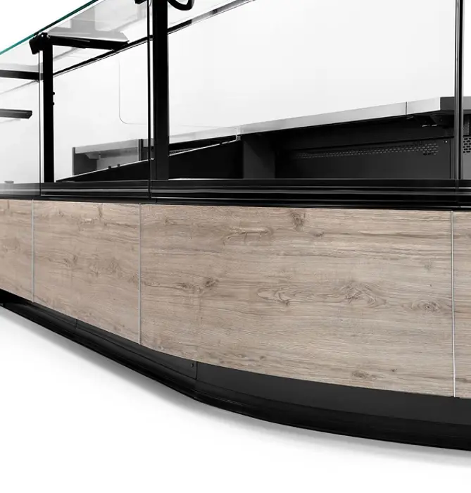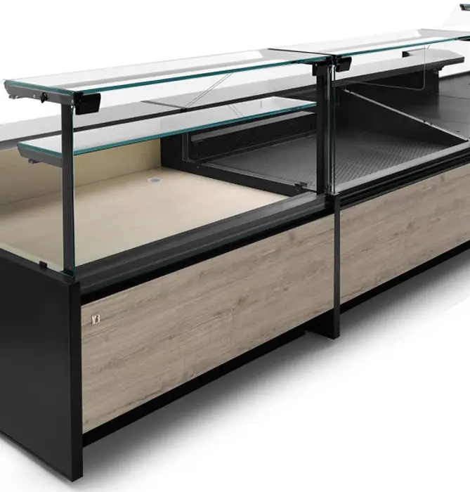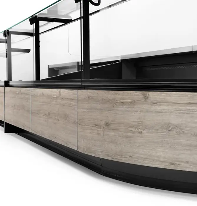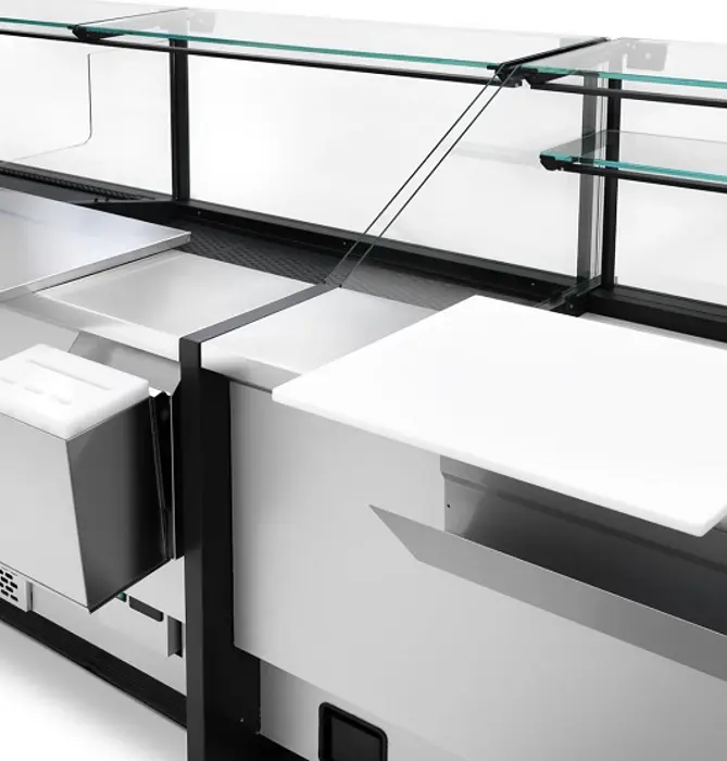 Διαμορφώστε τη Gourmet σύμφωνα με τις ανάγκες σας και επιλέξτε ανάμεσα στις διάφορες δυνατότητες εξατομίκευσης: διαμορφώστε τη βιτρίνα με τα φινιρίσματα και τα αξεσουάρ που ταιριάζουν καλύτερα στο γούστο και τις ανάγκες σας, όπως: βάση ζυγαριάς από ανοξείδωτο ατσάλι, επιφάνεια κοπής από πολυαιθυλένιο, θήκη για μαχαίρια, θήκη για χαρτί πάγκου, συρόμενες πόρτες από διαφανές πολυκαρβονικό για καλύτερη συγκράτηση του κρύου και εξοικονόμηση ενέργειας.