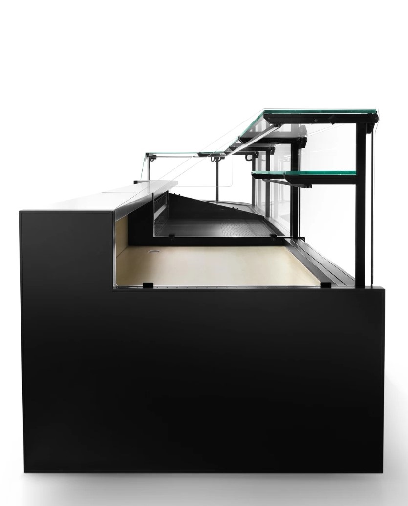 Το άνοιγμα του μπροστινού γυαλιού προς τα πάνω διευκολύνει τις εργασίες τοποθέτησης και καθαρισμού. Ο αισθητήρας θερμοκρασίας, που τροφοδοτείται με ηλιακή ενέργεια, ενσωματώνεται άψογα στη βιτρίνα, όπως και ο LED φωτισμός που είναι κρυμμένος στο πάνω μέρος.