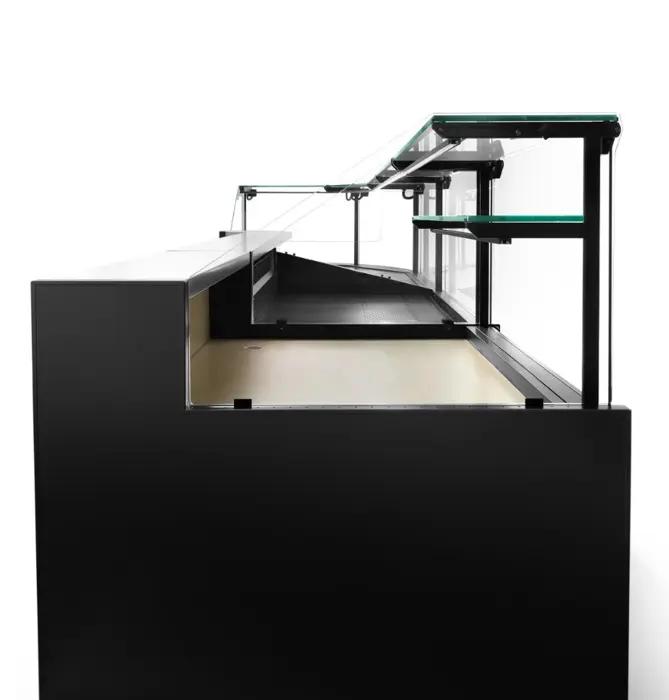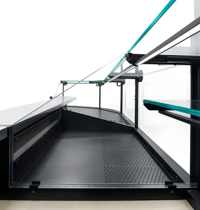 Δώστε στα προϊόντα σας εξαιρετική προβολή. Χάρη στον αερισμό στα μπροστινά και πλαϊνά γυαλιά, η Gourmet αντισταθμίζει αποτελεσματικά τη δημιουργία υγρασίας, ενώ ο ειδικός φωτισμός LED αναδεικνύει φυσικά την εμφάνιση και τη φρεσκάδα των προϊόντων σας. Επιπλέον, με τους επιπλέον δίσκους προβολής, μπορείτε να αναδείξετε ακόμα περισσότερο την πιο αποκλειστική σας προσφορά.