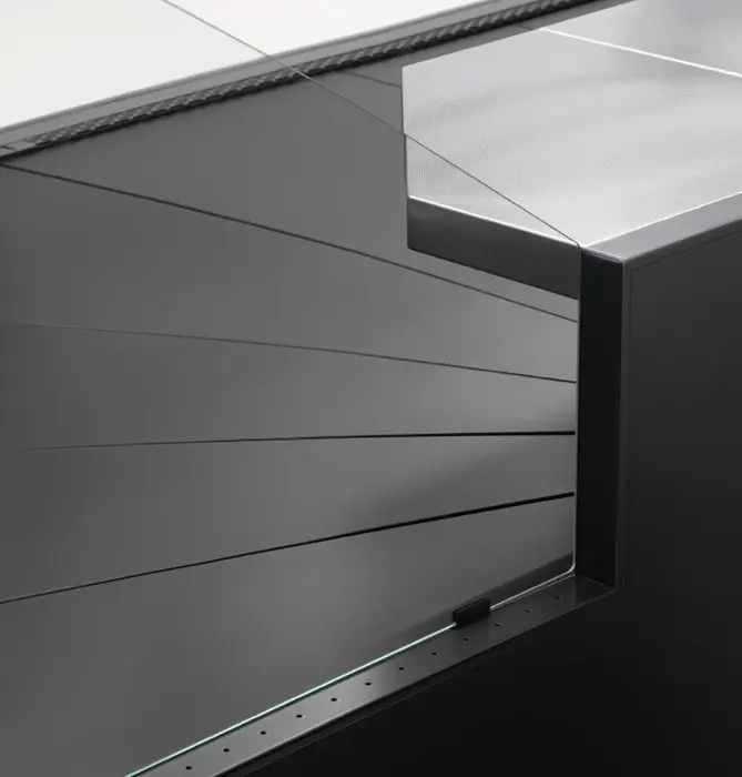Η ανθεκτική σε γρατσουνιές ανάγλυφη επιφάνεια εργασίας από ανοξείδωτο ατσάλι και το κομψό προφίλ που συνοδεύει την ανώτερη γραμμή της επένδυσης συνθέτουν λύσεις που συνδυάζουν αρμονικά λειτουργικότητα, ποιότητα και στυλ.
