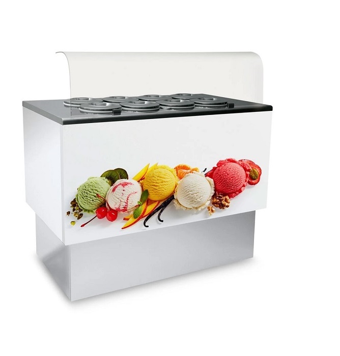 The Pozzetti Fast has been designed for ice-cream shops which may want to take ice-cream outdoors, but also for cafes and restaurants which want to have an ice-cream display case in their premises.