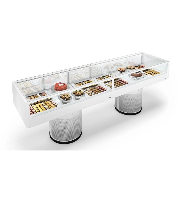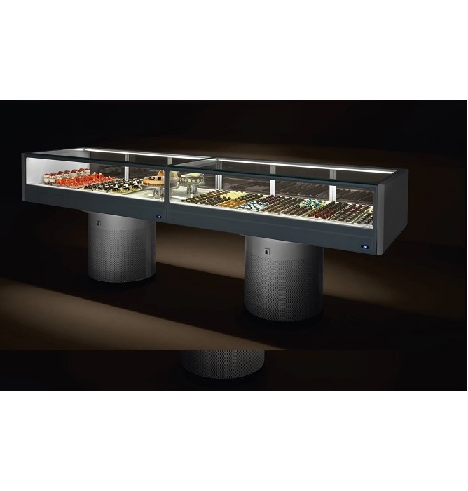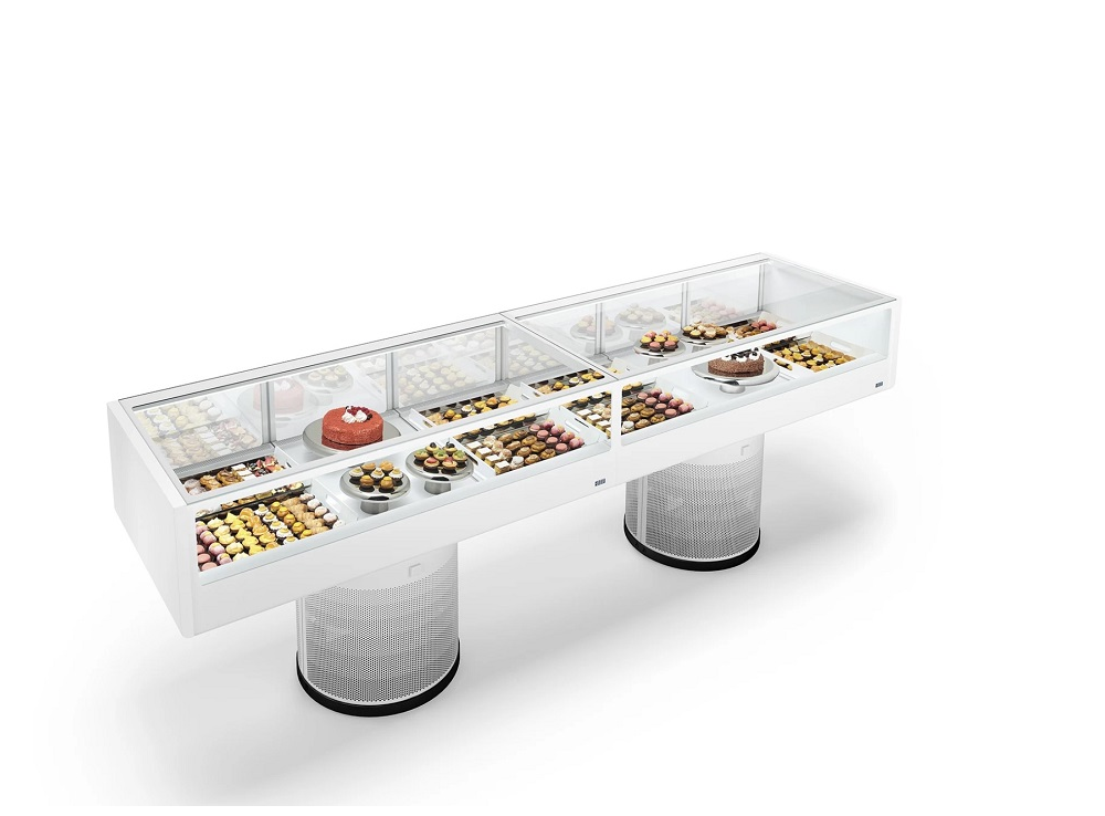 A display case with a unique look in which shape and feature merge like the visual appeal and the flavour of your pastry-making art.