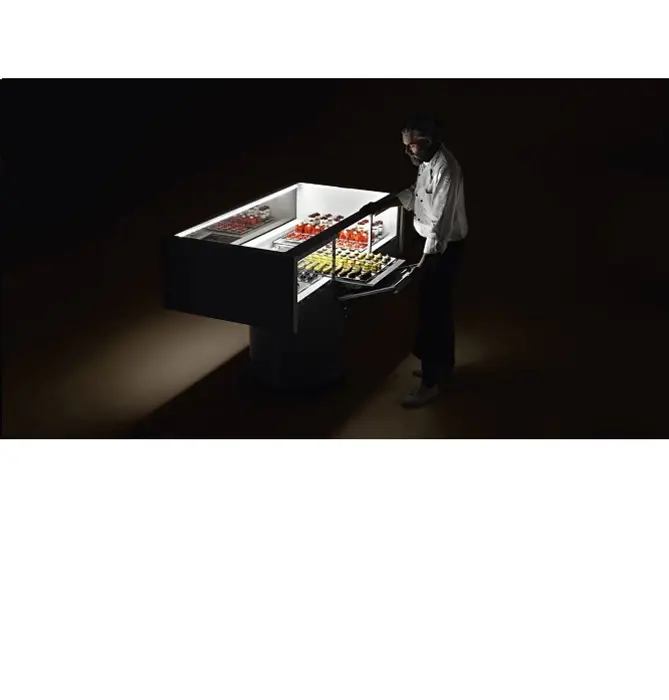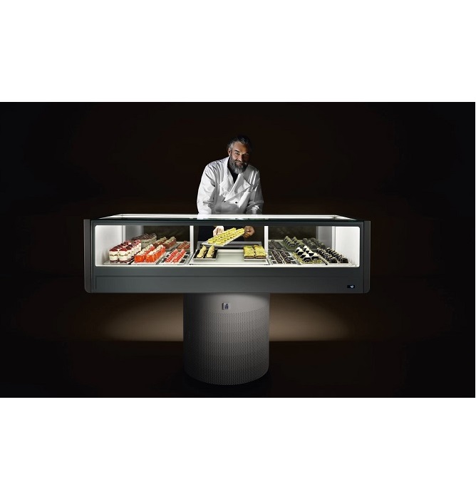 A display case with a unique look in which shape and feature merge like the visual appeal and the flavour of your pastry-making art. Free from weights, decorations and overhead structures, Colonna is an illuminated island where the first-class creations of your artisan expertise meet your customers’ desire.