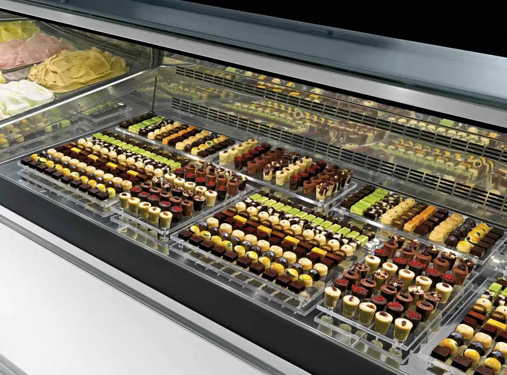 In addition, in the Gelato and Gelato/Pastry services, Cubika is equipped with the Acoustic Comfort system: a system that allows an impressive 3 dB reduction of the noise produced by the showcase, bringing it from 59 to 56 dB. Acoustic Comfort System means the well-being and health of the operators, but also the care for the customers who are welcome in a more comfortable and relaxing environment.