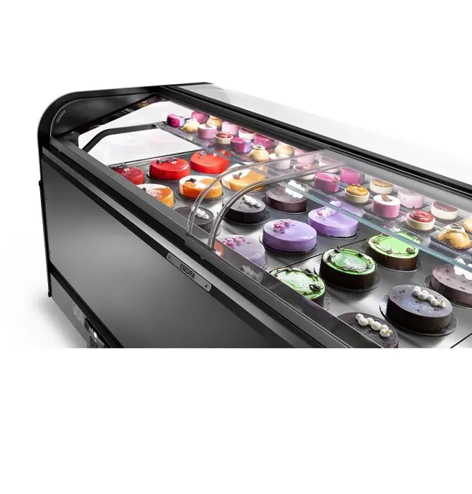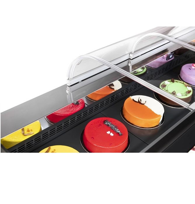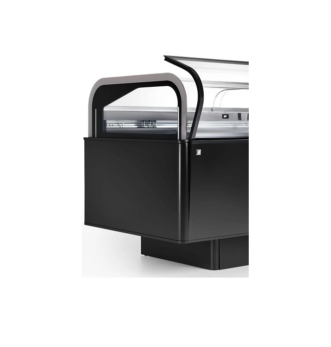 • Fully double-glazed display case: curved heated front glass with tungsten wires, and pyrolytic and tempered side glass panels.• Flawless display harmony: ideal for integrating multiple services into a single, continuous, and refined design.• Ergonomic and compact design: the structure, designed for ease of service, offers a perfect balance between functionality and space efficiency.• Health protection: antibacterial, self-sanitising and anti-mold sheet metal interior, helping to maintain ideal hygiene conditions.• Uniform and diffuse lightning: 4000K LED.• Elegant line: hidden clamp.• Improved visibility: optimized shelf positioning.