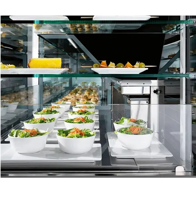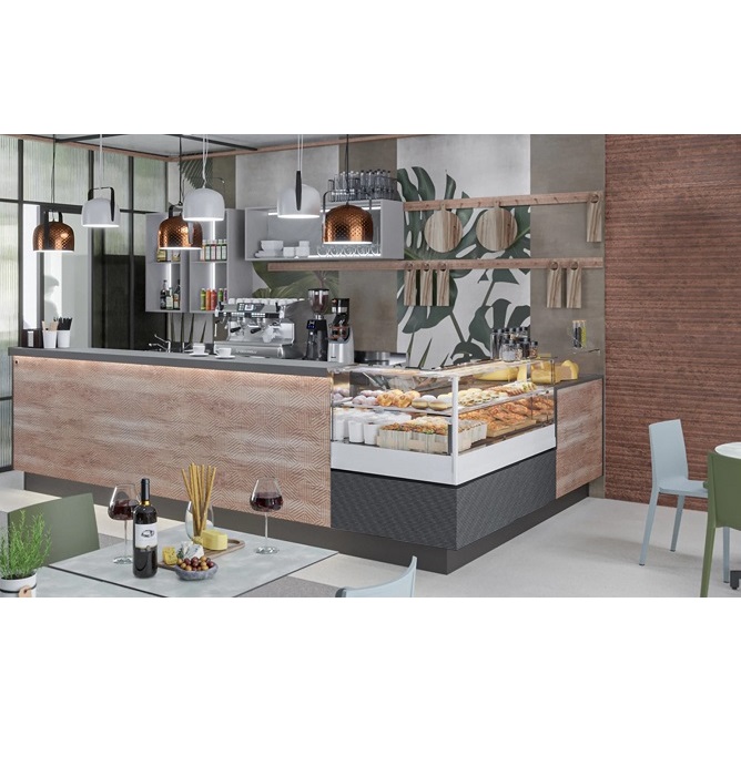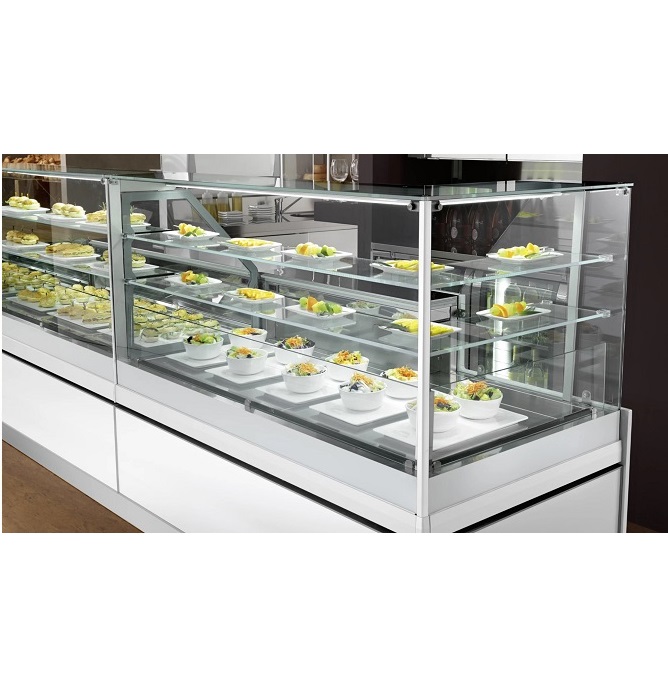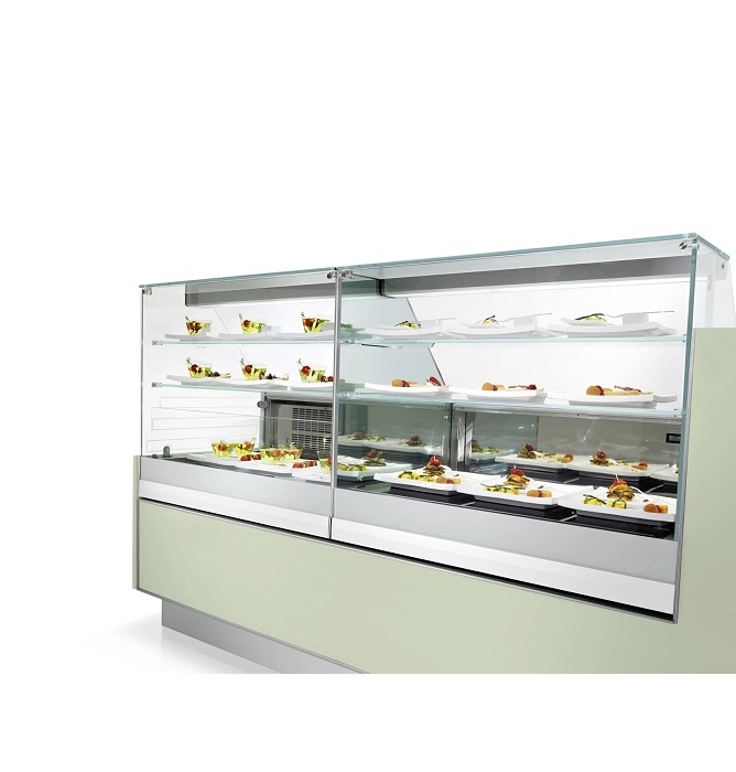 Choose from the many customization options: ventilated or static refrigeration , different types of glass frame, units based on type of service, in-line combinations and panelling, connections and decorative panels.