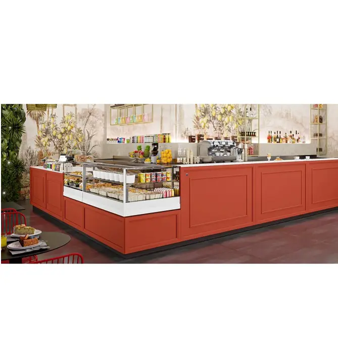 Develop the offer of your venue as you desire thanks to Mix’s wide range. You can choose among different types of services, glass frame and lengths. For greater ease of work and to make the most of the display space, it is possible to connect in series several display cases of the same service without dividers.