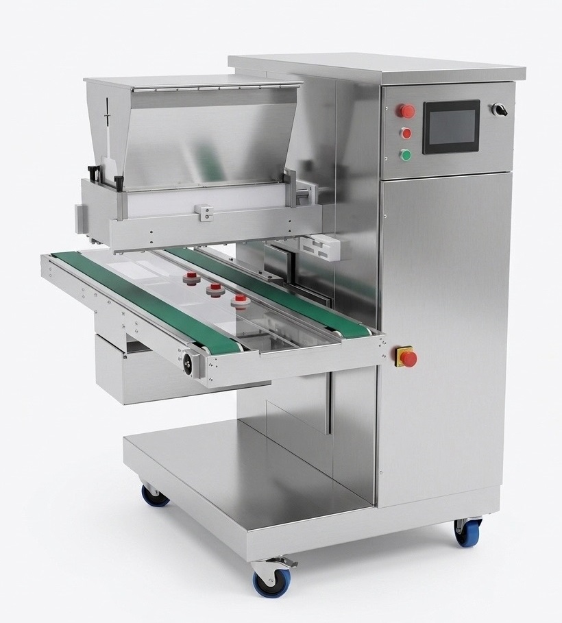 • Procesa todo tipo de masa y actúa como una máquina de deposición de materiales, con la capacidad de intercambiar moldes y piezas para lograr una adaptabilidad total.