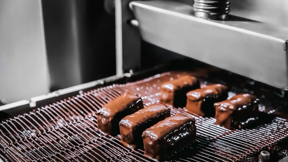 • Montaje automático de capas con control preciso de temperatura para cada tipo de chocolate.