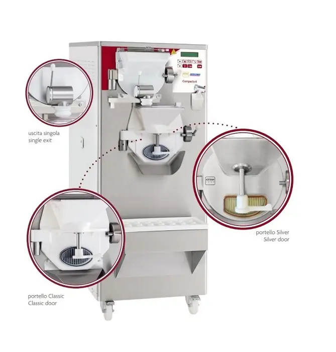 Η Compacta είναι η σύνθετη μηχανή για παγωτό που επιτρέπει την ολοκλήρωση όλου του κύκλου παραγωγής παγωτού. Η Compacta Vario είναι μια μονάδα δύο σε ένα. στο πάνω μέρος υπάρχει ο λέβητας, ενώ στο κάτω ο οριζόντιος κύλινδρος της ψύξης.