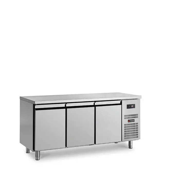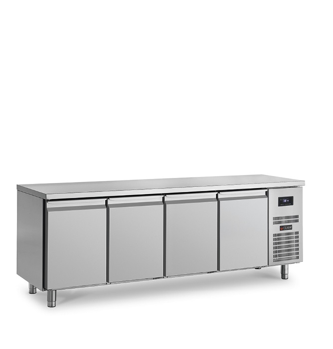 Οι πάγκοι κατασκευάζονται με ενιαία κατασκευή, πλήρως από ανοξείδωτο χάλυβα AISI 304, με πυρήνα μόνωσης 50 mm πάχους, κατασκευασμένο με έγχυση ρητινών πολυουρεθάνης υψηλής πυκνότητας χωρίς HCFC. Ο θάλαμος έχει μια καλουπωμένη και στρογγυλεμένη βάση για να εξασφαλίζει μέγιστη καθαριότητα και υγιεινή. Οι πόρτες διαθέτουν μαγνητικές στεγανώσεις τύπου snap-in, οι οποίες είναι εύκολα αντικαταστάσιμες. Η ψύξη είναι με ανεμιστήρα, με προστατευμένα  στοιχεία εξάτμισης  τοποθετημένα ανάμεσα στους θαλάμους, ενώ η μονάδα συμπύκνωσης είναι αφαιρούμενη και τοποθετημένη σε ράγες για εύκολη συντήρηση. Η θερμοκρασία ελέγχεται από τον πίνακα ελέγχου που βρίσκεται στο πίσω μέρος του θάλαμου και εμφανίζει συνεχώς τη θερμοκρασία.