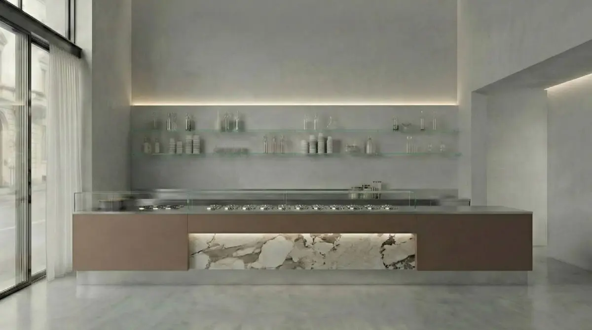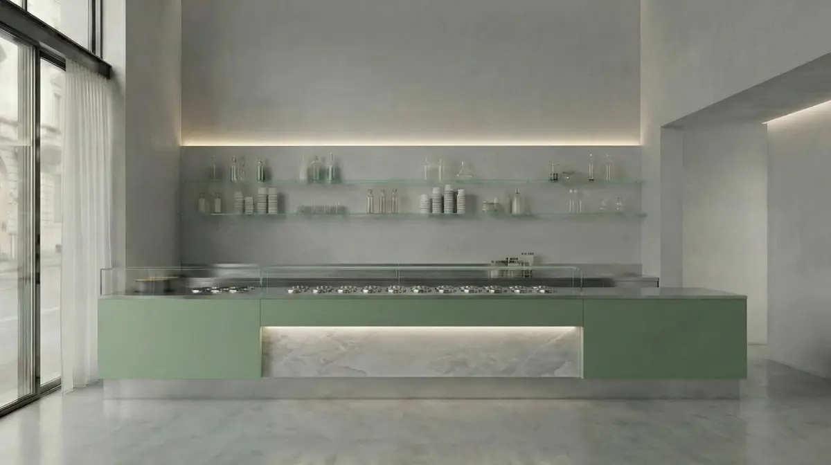 The Pozzetti display case fits perfectly with all styles of gelaterias, both modern and traditional.