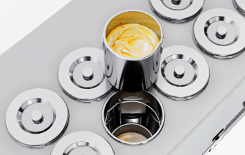 Rrjedha e vazhdueshme dhe uniforme e ajrit siguron një temperaturë konstante brenda kanaçes së akullores, duke eliminuar shtresëzimin e ftohtë dhe duke minimizuar diferencën e temperaturës midis dy kontejnerëve të akullores, enës së akullores që shërbeni dhe magazinës.