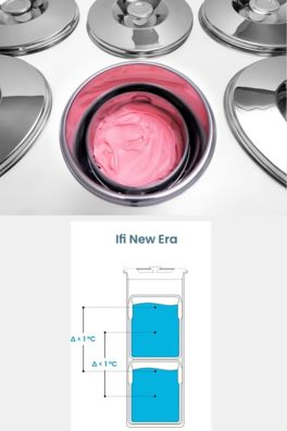 Sistemi i ftohjes i New Era siguron një temperaturë të barabartë brenda enës së akullores, duke eliminuar shtresëzimin e ftohtë. Falë rrjedhës së vazhdueshme dhe uniforme të ajrit, diferenca e temperaturës midis dy kontejnerëve të akullores, shërbimit dhe magazinës minimizohet.