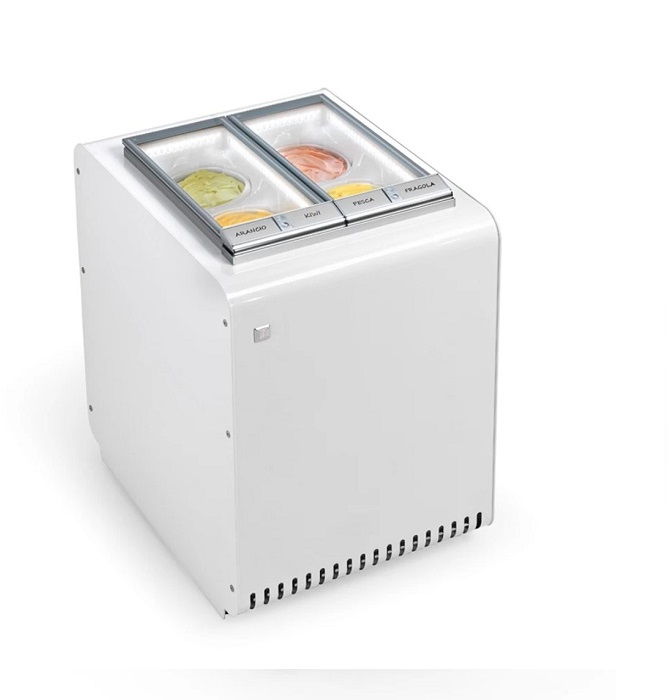 Ventilisano hlađenje sa integrisanom kondenzacijskom jedinicom, odlične performanse očuvanja i savršena izolacija sa dvostrukim staklom i hermetičko, električno potpomognuto zatvaranje omogućavaju besprekorno očuvanje ukusa, izgleda i karakteristika sladoleda.
