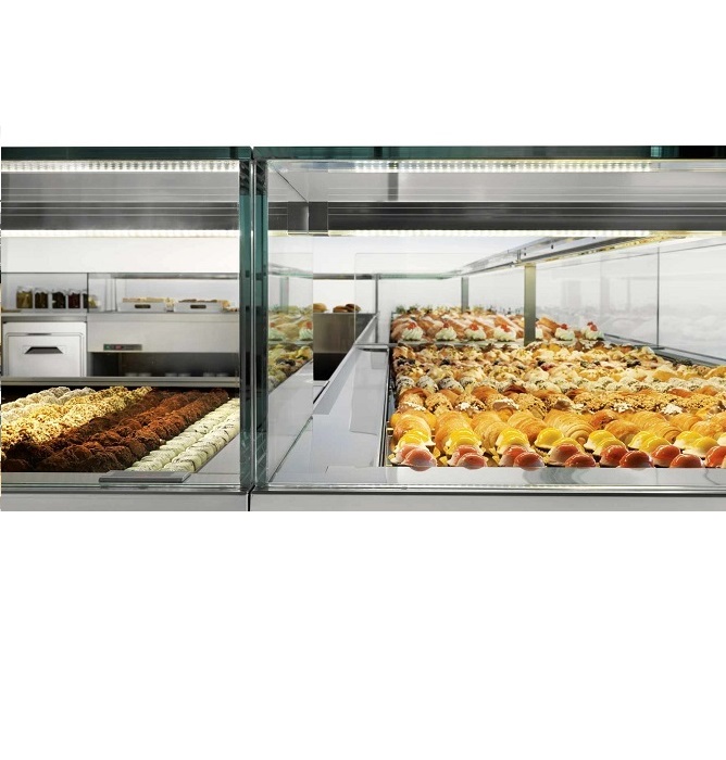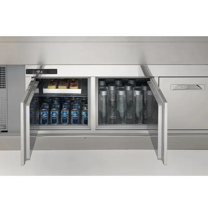 Sve Delice Drop-in i ugrađeni vrhovi imaju hlađenje i / ili zagrejane površine na istoj visini kao i radna površina kako bi ponudili maksimalnu ergonomiju i posebno su dizajnirani da odgovaraju komercijalnim posudama KSNUMKSkKSNUMKS mm / KSNUMKS "k KSNUMKS". Rezervoar je opremljen posudama podesivim u tri različita položaja, kako bi se bolje zaštitili proizvodi različitih visina.
