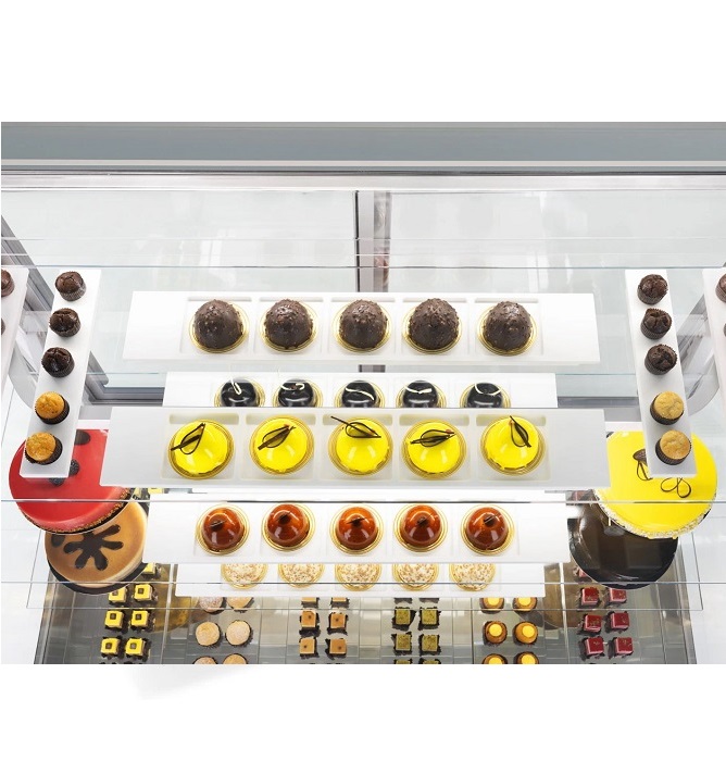Liliumovo veliko prednje staklo poboljšava prikazane proizvode odličnom transparentnošću, bez kondenzacije i strukturnih barijera. Ugrađeno LED perimetarsko osvetljenje savršeno uokviruje vaše kreacije, koje se mogu još više poboljšati odabirom spot svetla na policama. Velika vitrina, mogućnost korišćenja 23.62 "k 145.74" ležišta i podesive police od kaljenog stakla daju slobodu vašem kreativnom izražavanju, čineći vašu prezentaciju zaista jedinstvenom. U samouslužnoj verziji, raspoloživi prostor će se pojaviti beskonačan, za savršenu uslugu.