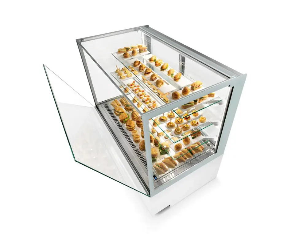 U kabrioletskoj usluzi, za konditorske proizvode (-T ° / + T °), sistem protiv magle eliminiše zamućenje na prednjem staklu nakon otvaranja, uvek obezbeđujući besprekornu prezentaciju. Ugrađeno LED osvetljenje perimetra savršeno uokviruje vaše kreacije, koje se mogu dodatno poboljšati odabirom reflektora na policama.